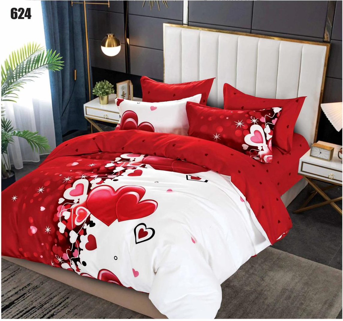 Premium Full Luxurious Bed Set 6PCS Red Hearts Premium Bed Set