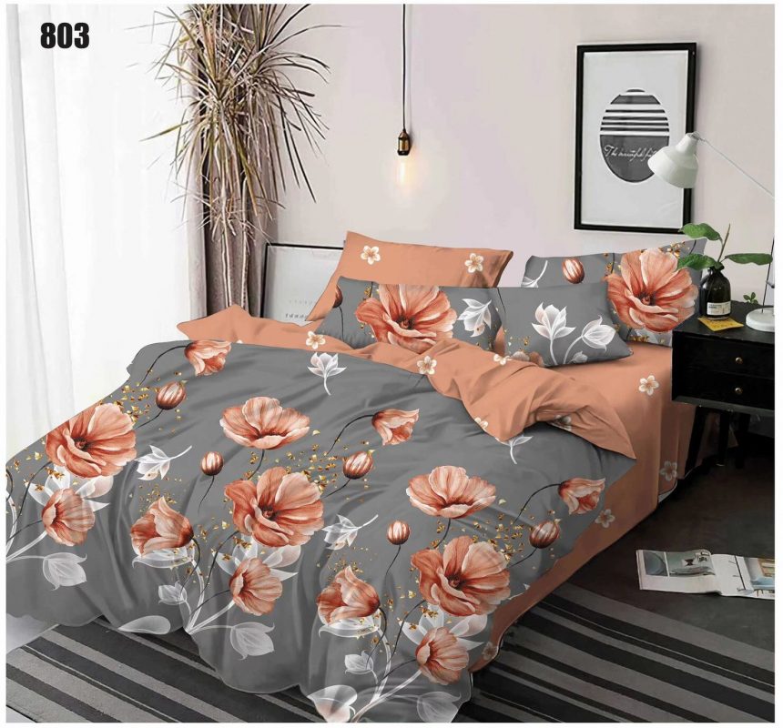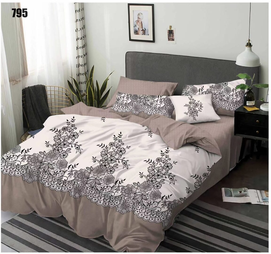 Premium Full Luxurious 6Pcs Bed Set – Flowers Brown | Premium BedSet